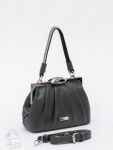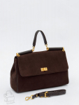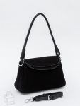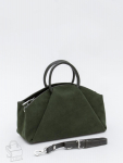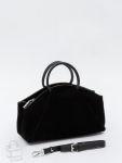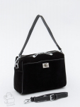 Актуальная сумка, выполнена из замши. Дополнена серебристой фурнитурой. Данная модель закрывается на клапан, носится в руке за встроенные ручки. Или на плече, в комплекте имеется ремень с регулировкой длины. Каркас полужесткий. На дне предусмотрены ножки.