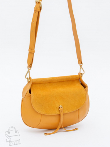 Яркая сумка, выполнена из замши. Дополнена блестящей золотистой фурнитурой. Данная модель закрывается на клапан, носится на плече. В комплекте имеется ремень с регулировкой длины. Каркас полужесткий.