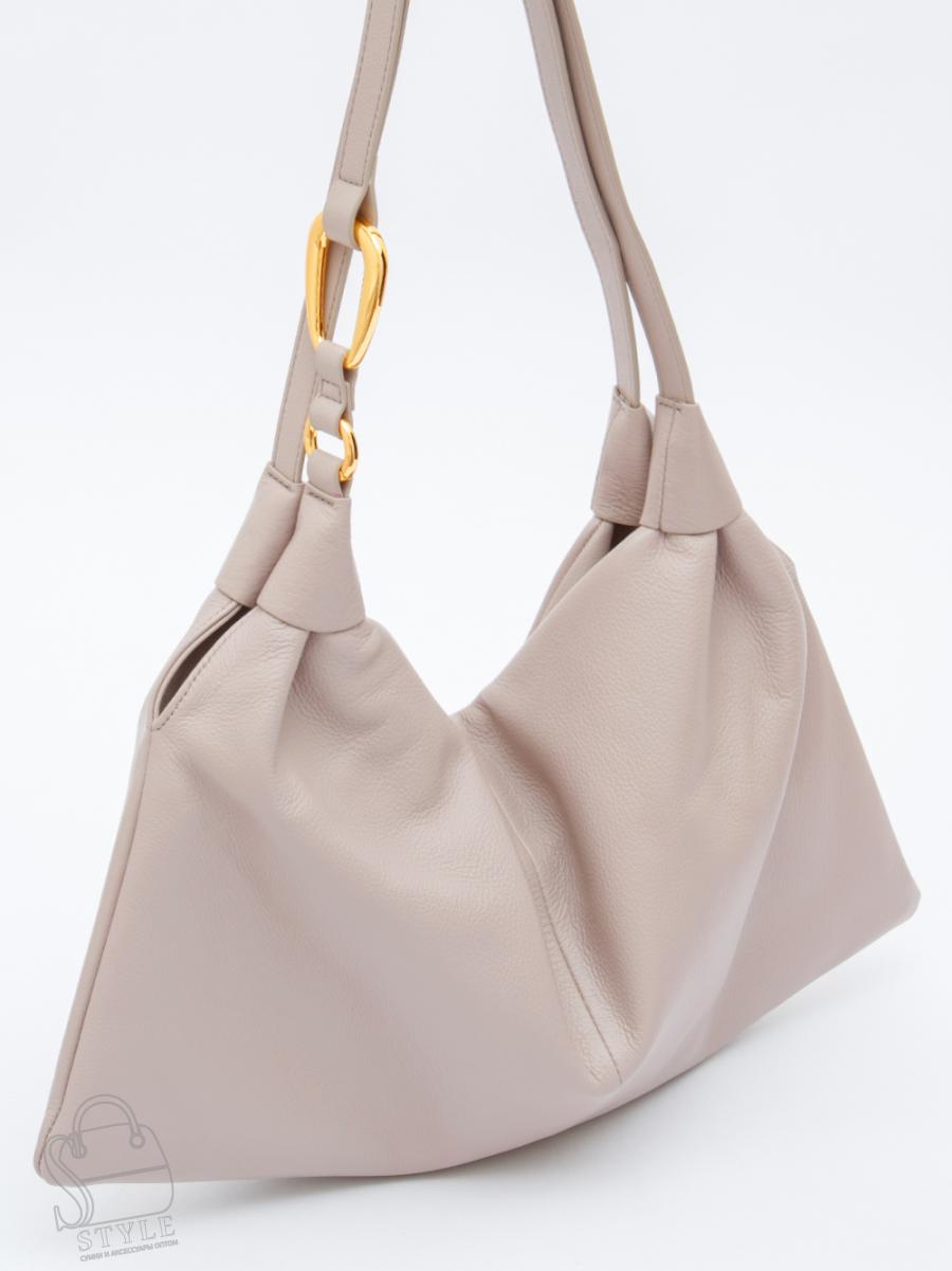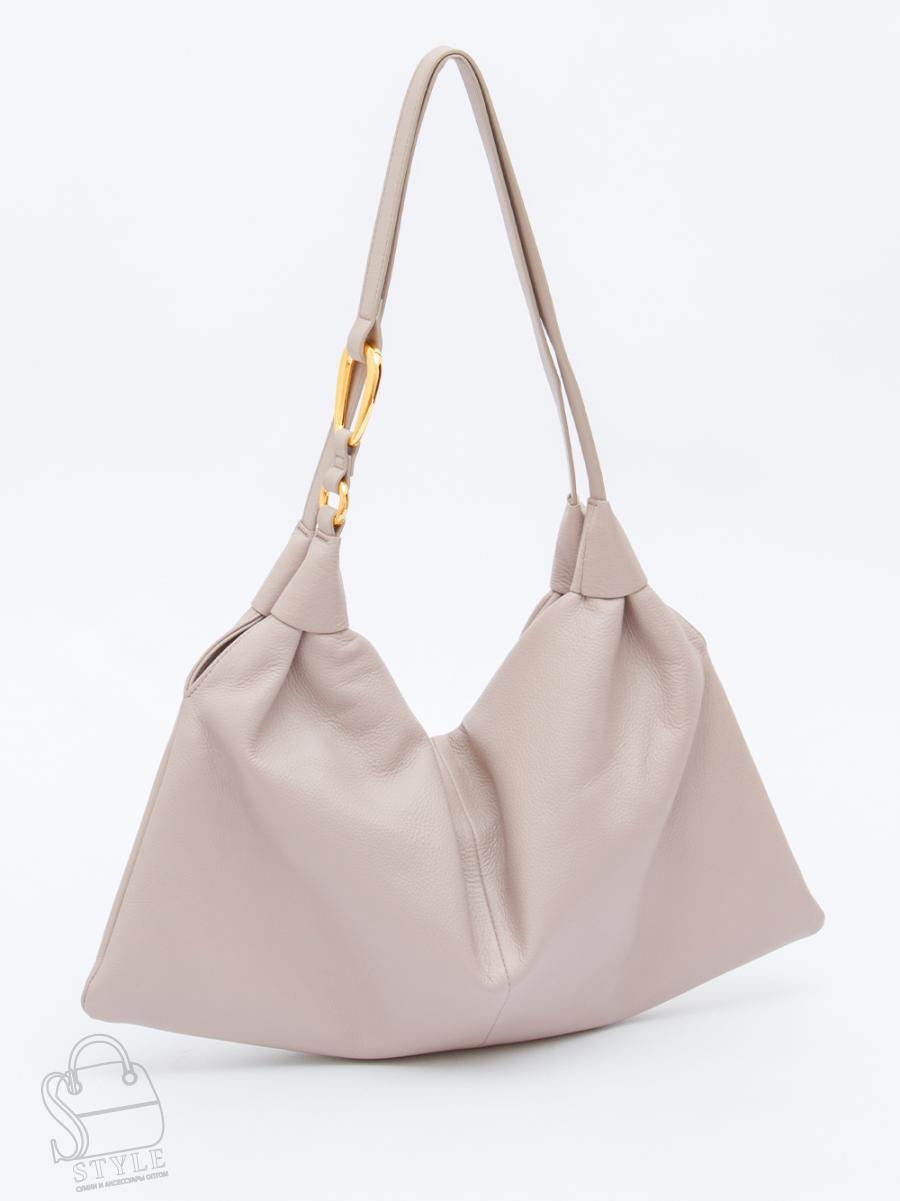 Сумка-хобо, выполнена из кожи Дополнена золотистой фурнитурой. Декорирована элементом на ручке. Данная модель закрывается на молнию Носится в руке или на плече за встроенные ручки. Каркас мягкий.