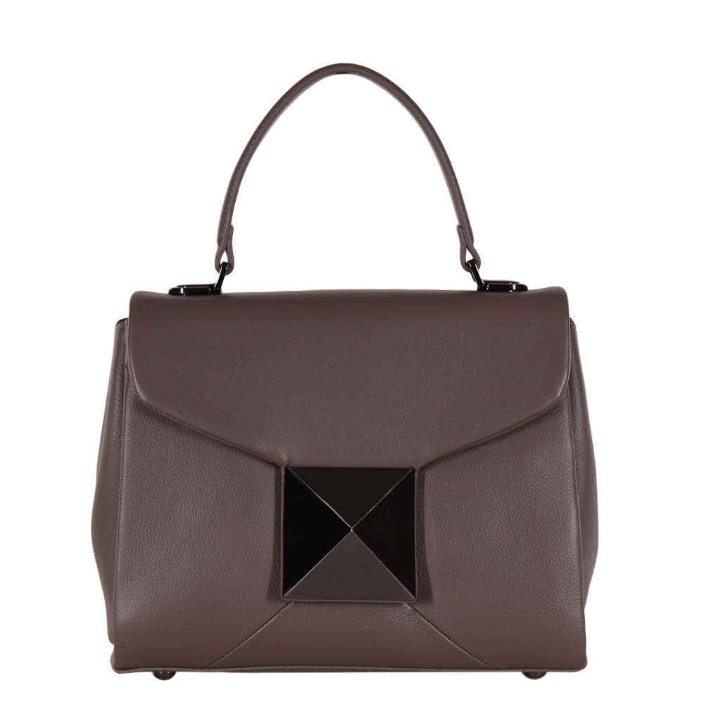 Сумка-сэтчел, выполнена из натуральной кожи. Декорирована пряжкой на клапане. Дополнена темной фурнитурой. Данная модель закрывается на клапан, носится в руке за ручки, на плече или через плечо с помощью ремня. Каркас полужесткий. На дне есть ножки.