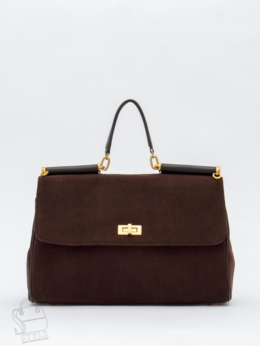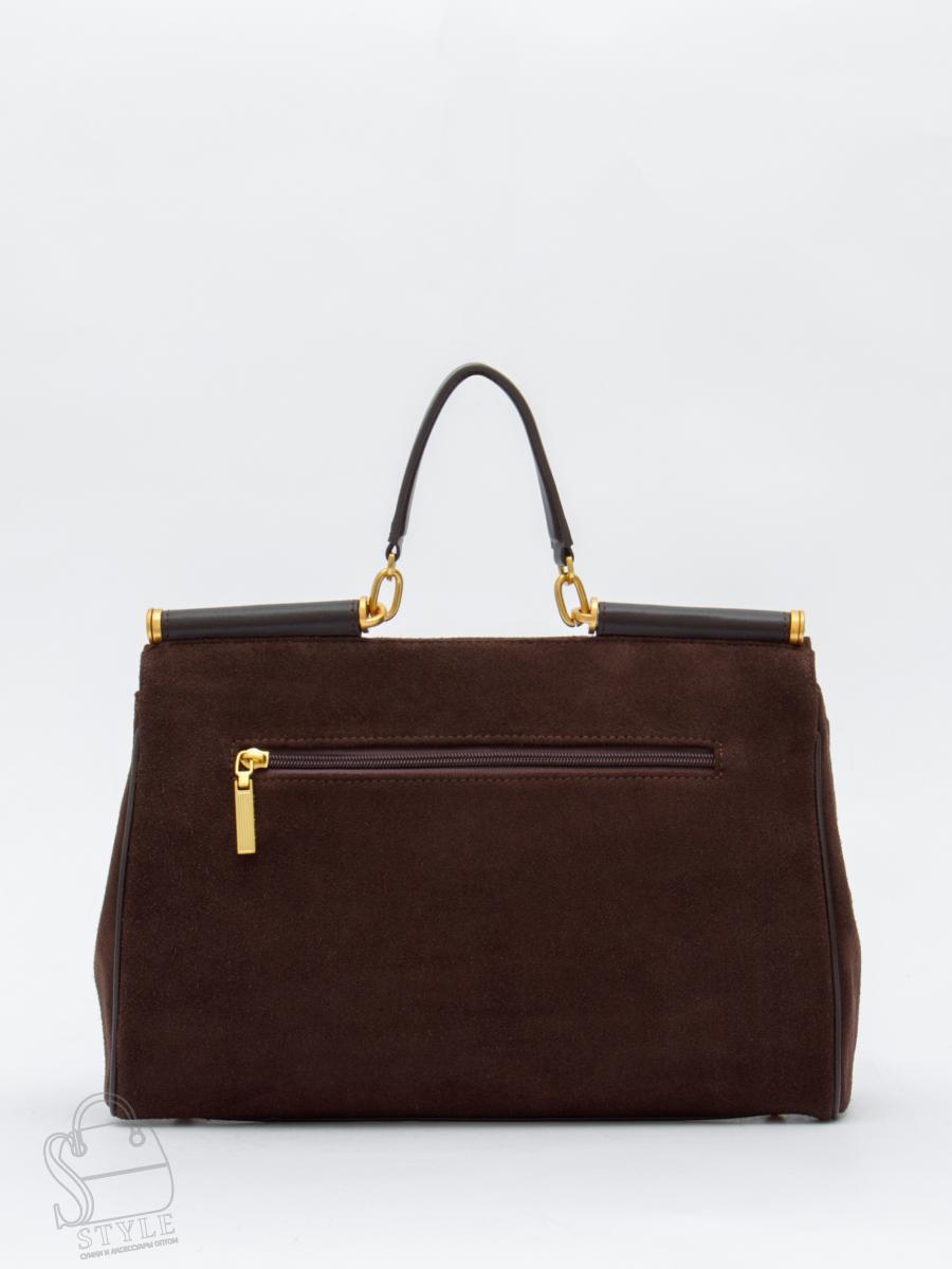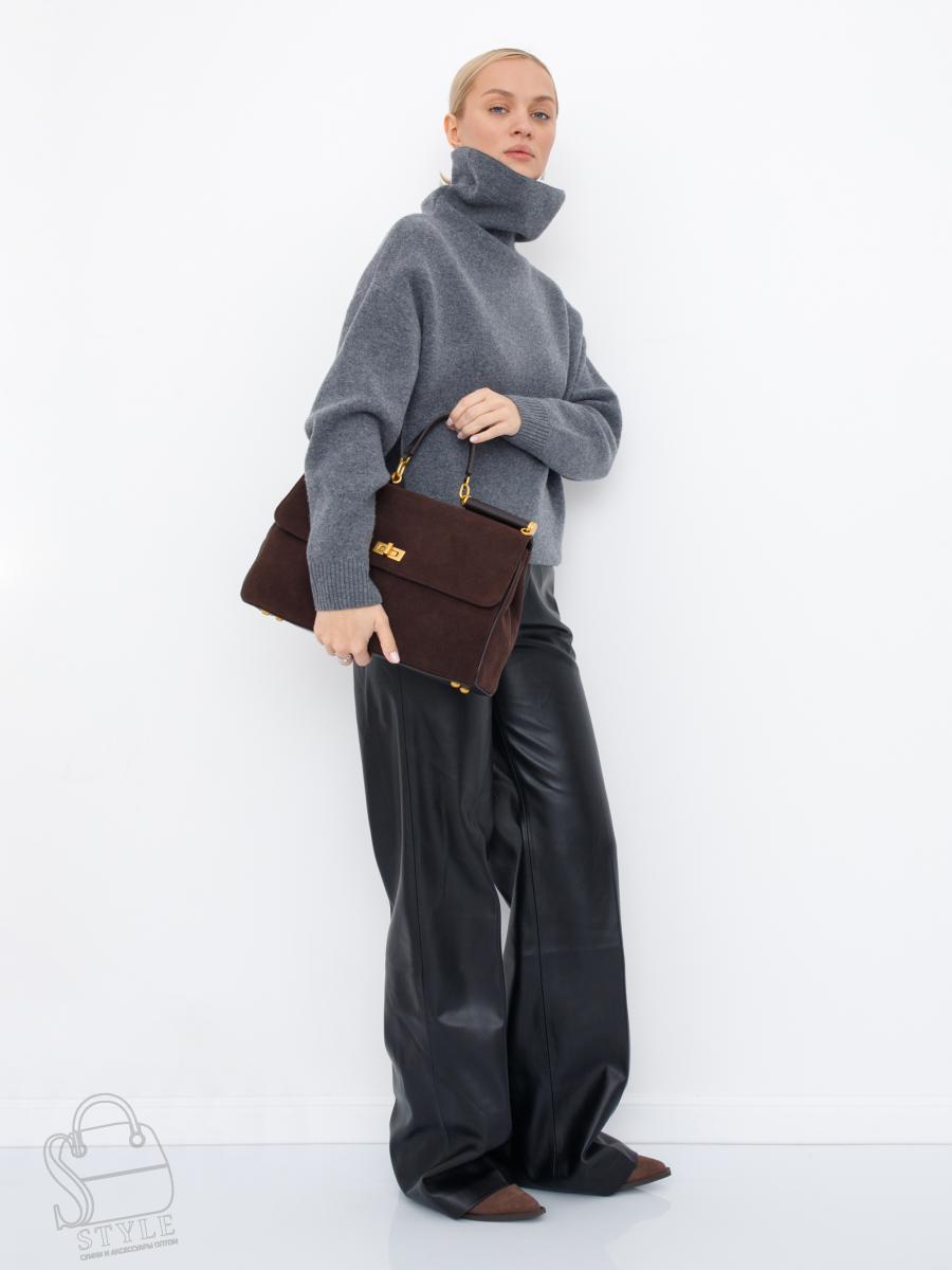 Сумка-сэтчел, выполнена из замши. Дополнена золотистой фурнитурой. Данная модель закрывается на клапан, носится в руке за встроенную ручку или на плече. В комплекте имеется ремень с регулировкой длины. Каркас полужёсткий. На дне предусмотрены ножки.