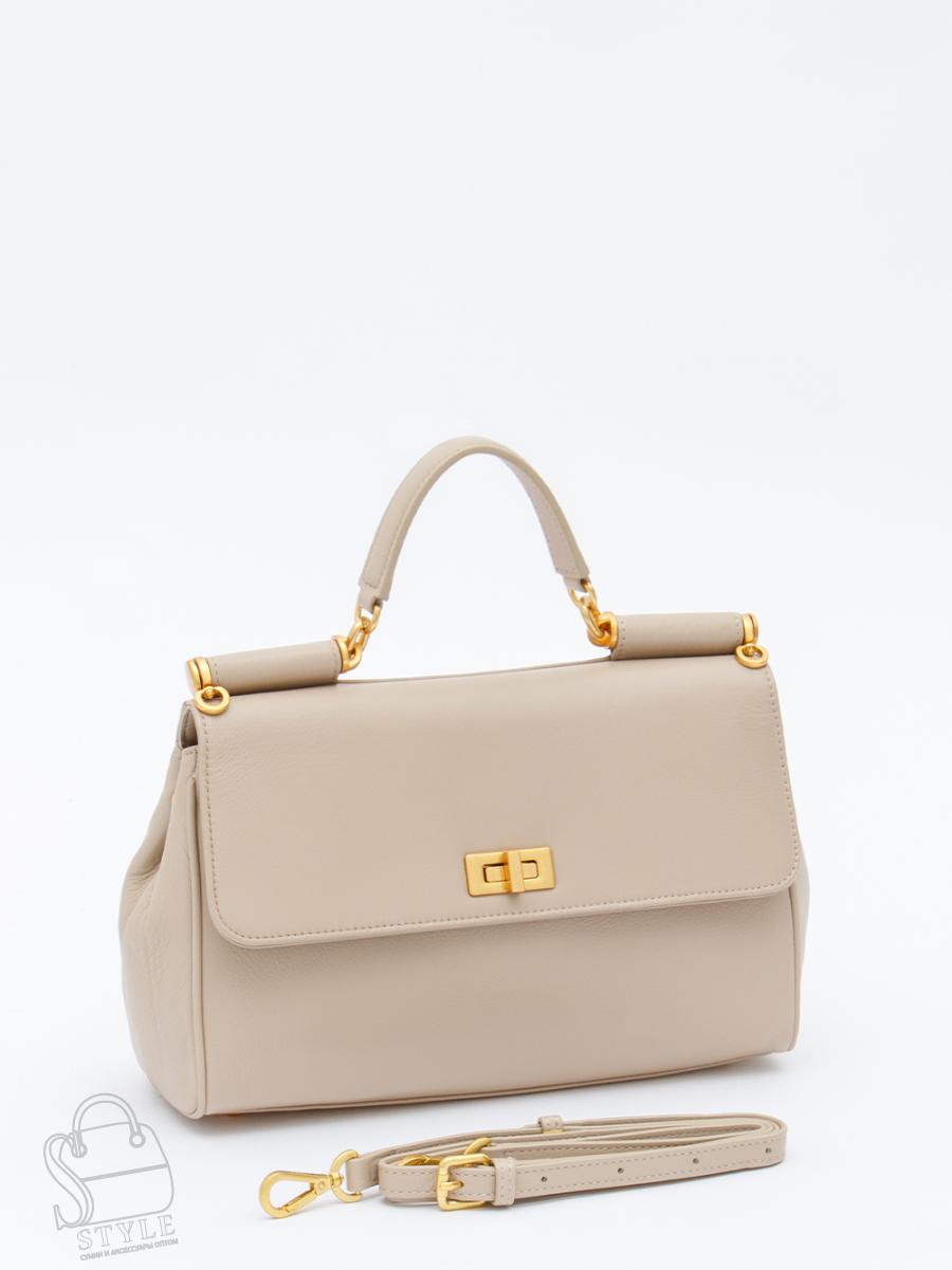 Сумка-сэтчел, выполнена из кожи Дополнена золотистой фурнитурой. Данная модель закрывается на клапан. Носится в руке или на плече за встроенные ручки. Каркас полужесткий.