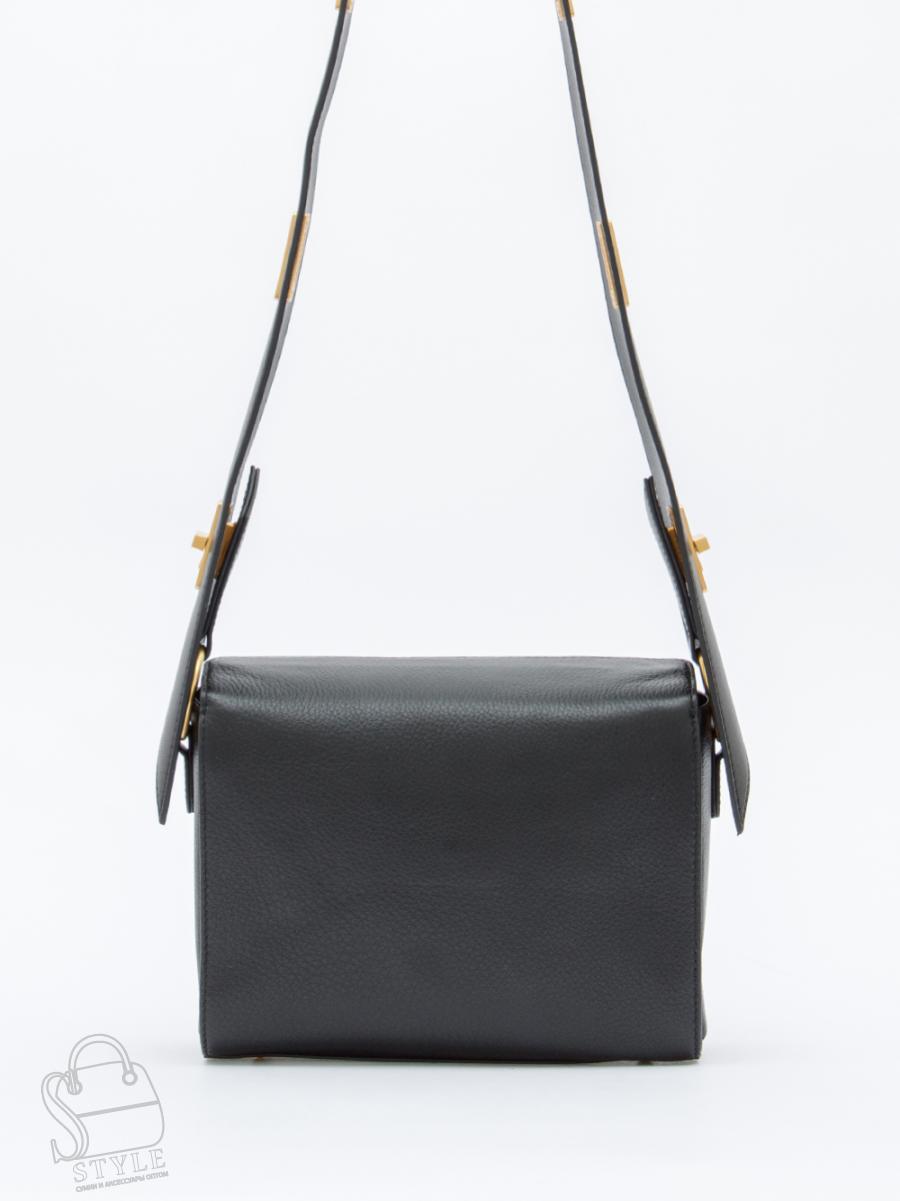 Сумка кросс-боди, выполнена из кожи. Дополнена золотистой фурнитурой. Данная модель закрывается на клапан. Каркас полужесткий. Носится на плече за встроенный ремень с регулировкой длины.