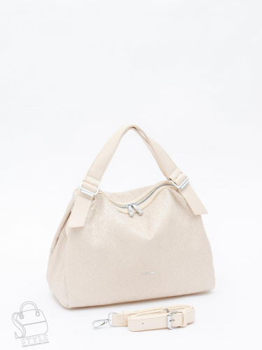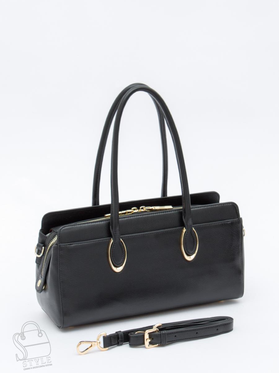 Формованная модель, выполнена из натуральной кожи. Дополнена блестящей золотистой фурнитурой. Данная модель закрывается на молнию, носится в руке за встроенные ручки или на плече. В комплекте имеется ремень с регулировкой длины. Каркас полужесткий. На дне предусмотрены ножки.