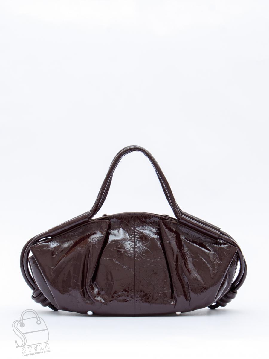 Модель-лодочка, выполнена из натуральной лаковой кожи. Дополнена серебристой фурнитурой. Декорирована узлами по бокам. Данная модель закрывается на молнию, носится в руке за встроенные ручки. Или на плече, в комплекте имеется ремень с регулировкой длины. Каркас мягкий. На дне предусмотрены ножки.