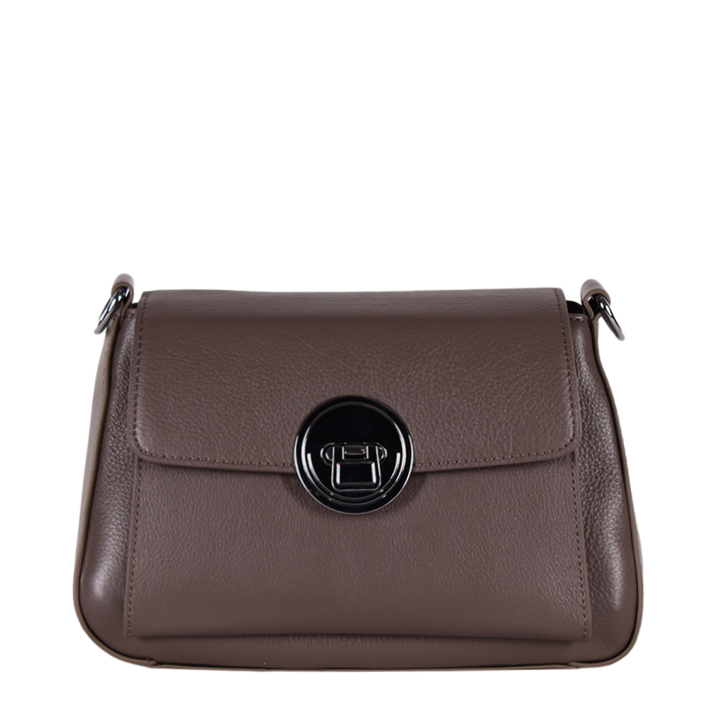 Вместительная модель среднего размера выполнена из натуральной кожи. Дополнена темной фурнитурой фурнитурой. Данная модель закрывается на клапан. Каркас полужёсткий. Носится сумка в руке за удлиненную ручку или на плече за съемный ремень. На дне предусмотрены ножки.