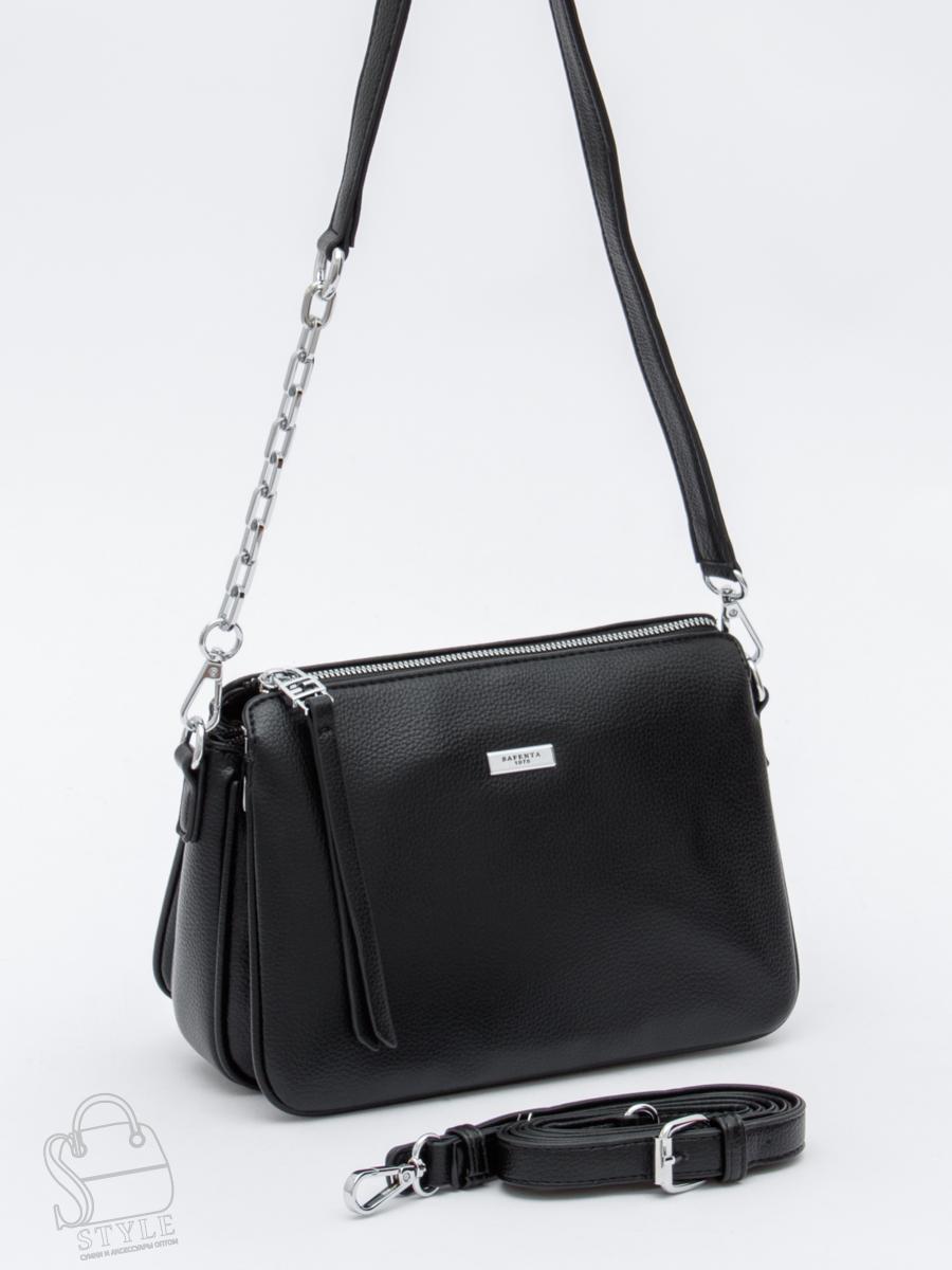 Сумка кросс-боди, выполнена из экокожи. Дополнена серебристой фурнитурой. Данная модель закрывается на молнии, носится в руке за съемную ручку. Или на плече, в комплекте имеется ремень с регулировкой длины. Каркас мягкий.