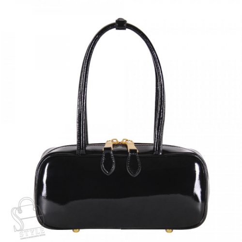 Сумка-такса, выполнена из натуральной лакированной кожи.  Дополнена матовой золотистой фурнитурой. Данная модель закрывается на молнию, носится в руке за встроенные удлиненные ручку. На них имеется фиксатор. На дне предусмотрены ножки.