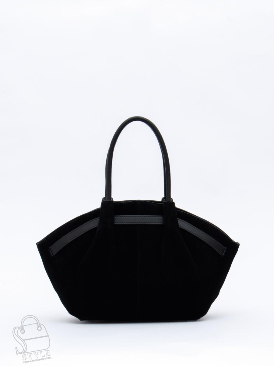 Сумка в форме лодочки, выполнена из замши. Декорирована ремнем на корпусе. Дополнена серебристой фурнитурой. Данная модель закрывается на молнию. Каркас полужесткий.  Носится на плече или в руке. В комплекте имеется съемный ремень с регулировкой длины и две встроенные ручки.
