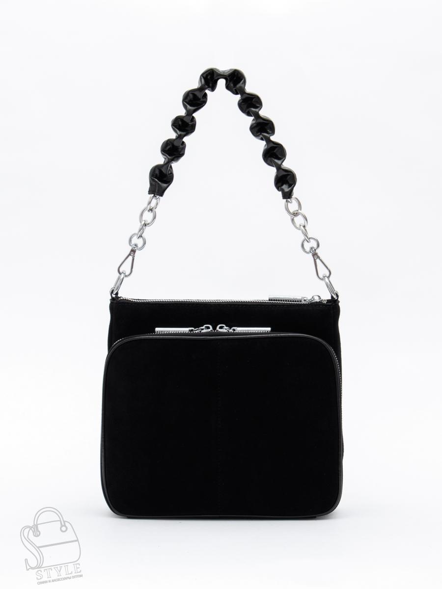 Функциональная сумка, выполнена из замши. Декорирована логотипом на передней части. Дополнена серебристой фурнитурой. Данная модель закрывается на молнию. Каркас полужесткий. Носится в руке за съемную ручку-цепочку или на плече. В комплекте имеется съемный ремень с регулировкой длины.