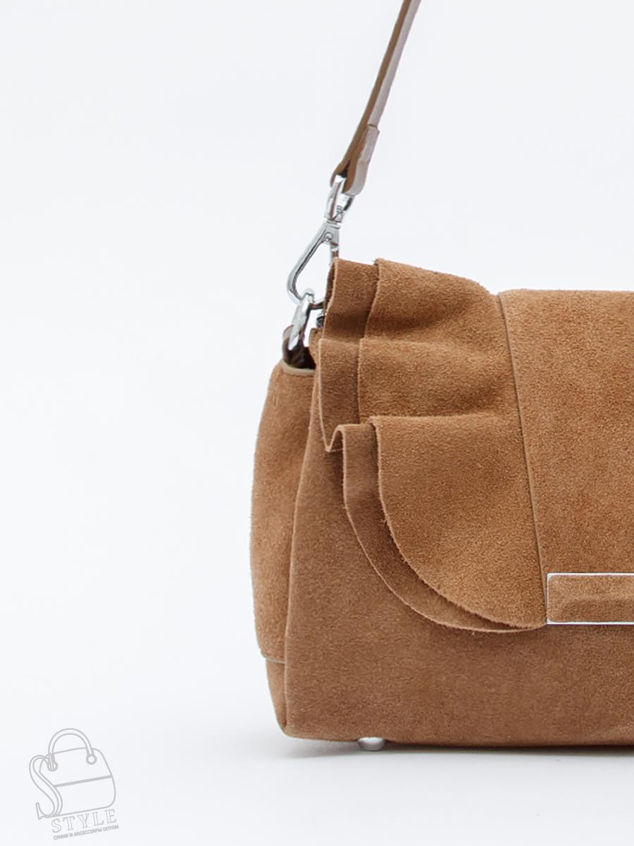 Эффектная сумка, выполнена из замши. Декорирована складками на клапане. Дополнена блестящей серебристой фурнитурой. Данная модель закрывается на клапан, носится в руке за съемную удлиненную ручку или на плече. В комплекте имеется ремень с регулировкой длины. Каркас полужесткий.