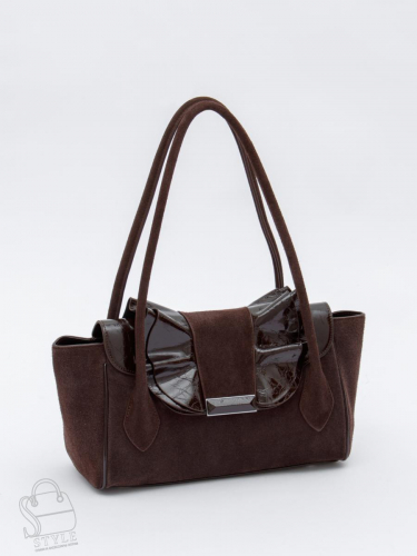 Эффектная модель, выполнена из натуральной замши. Декорирована деталью на клапане. Дополнена серебристой фурнитурой. Данная модель закрывается на клапан. Носится в руке или на плече за встроенные ручки. Каркас полужесткий. на дне предусмотрены ножки.