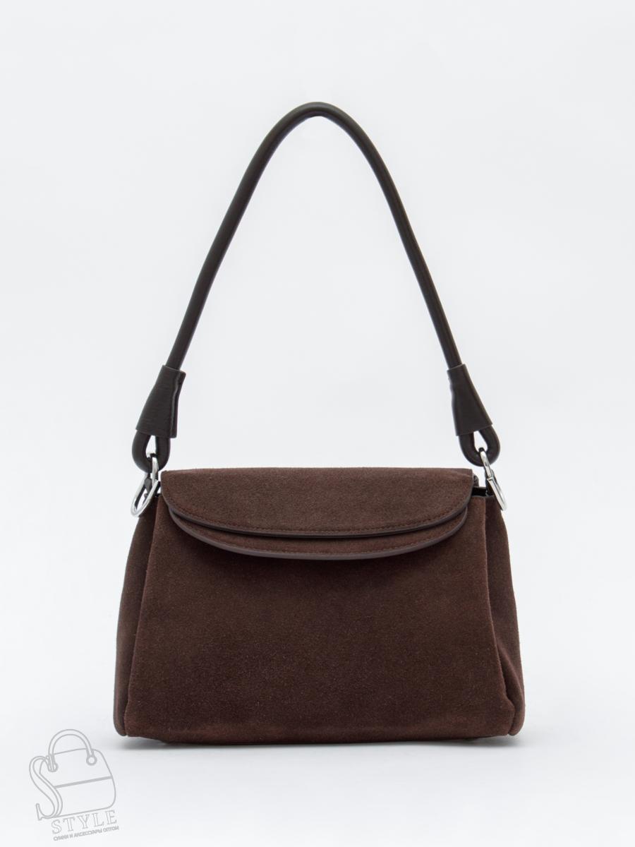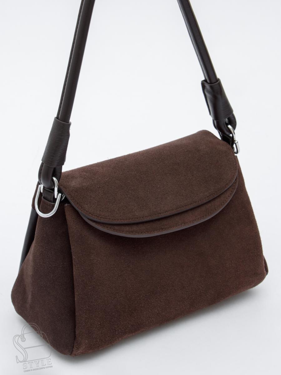 Базовая модель, выполнена из замши. Дополнена серебристой фурнитурой. Данная модель закрывается на клапан, носится в руке за съемную ручку. Или на плече, в комплекте имеется ремень с регулировкой длины. Каркас полужесткий. На дне предусмотрены ножки.