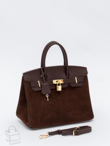 Трендовая модель, выполнена из замши и коже. Декорирована брелоком. Дополнена золотистой фурнитурой. Данная модель закрывается на клапан. Каркас полужесткий. Носится в руке или на плече. В комплекте имеется съемный ремень с регулировкой длины.
