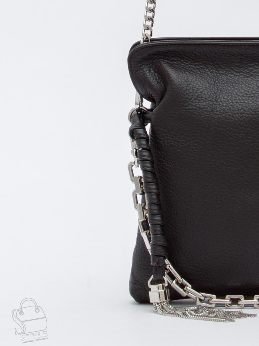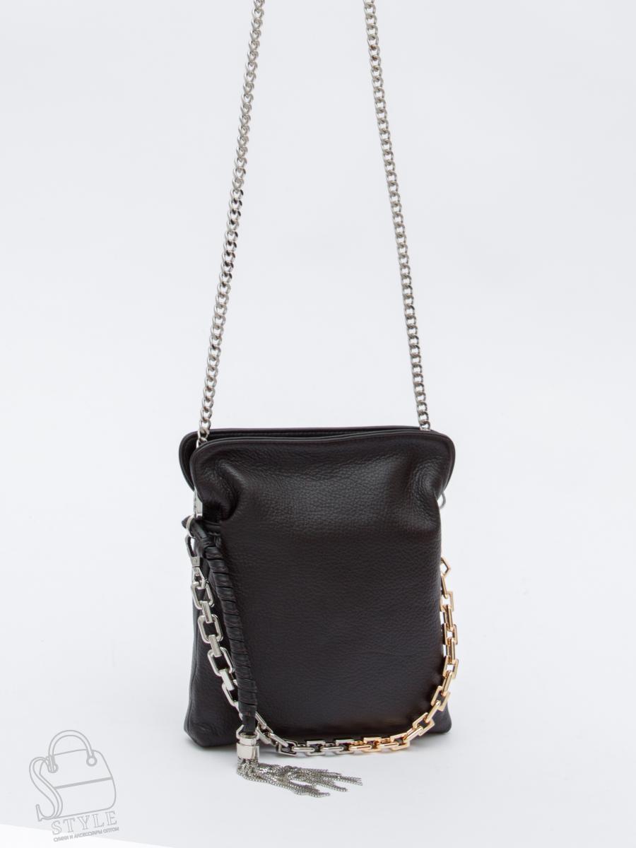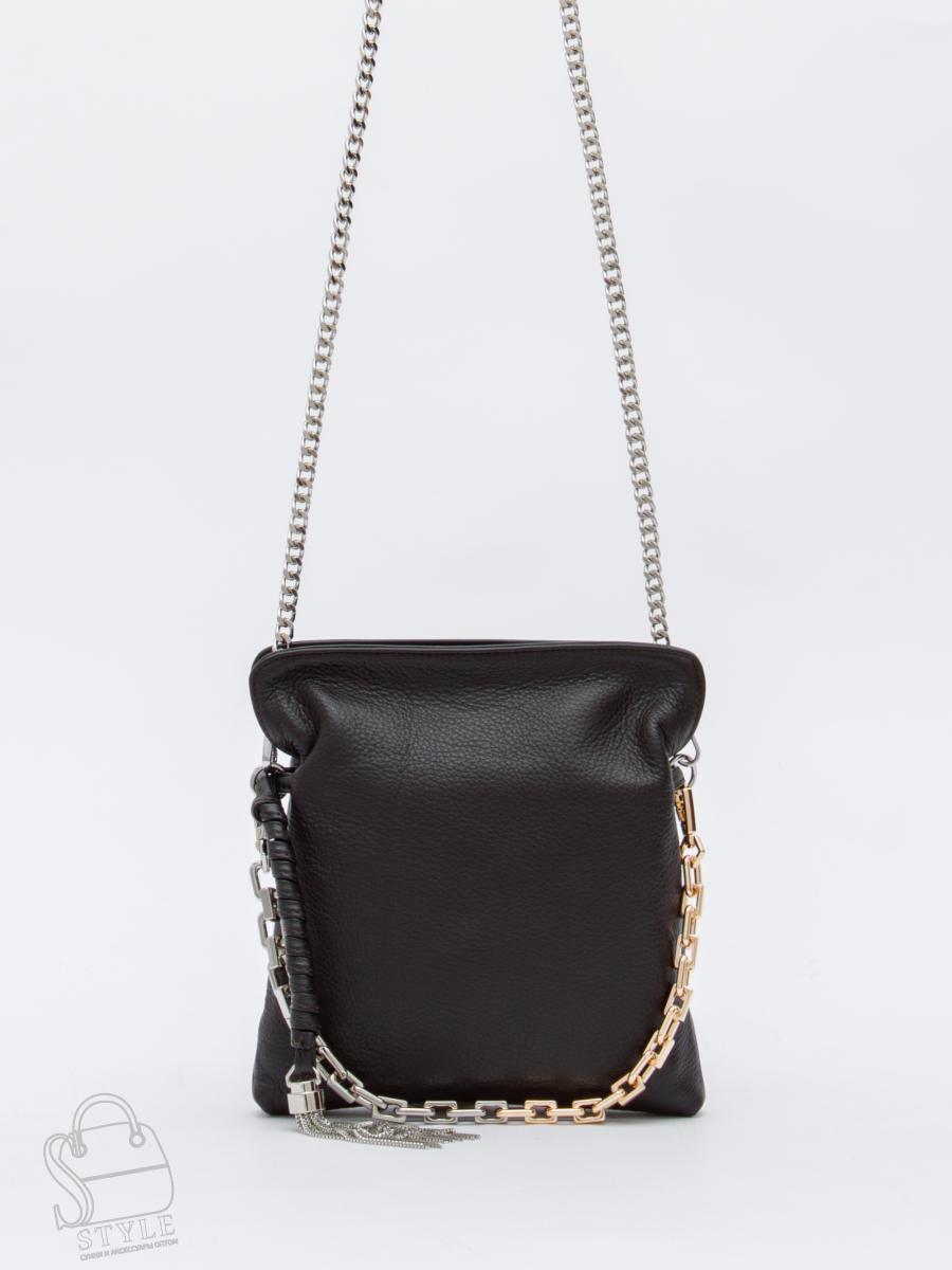 Сумка кросс-боди на цепочке, выполнена из натуральной кожи. Дополнена серебристой фурнитурой. Декорирована цепочкой комбинированной и брелоком. Данная модель закрывается на магнитную кнопку, носится на плече за встроенную цепочку с кожаной вставкой. Каркас мягкий.