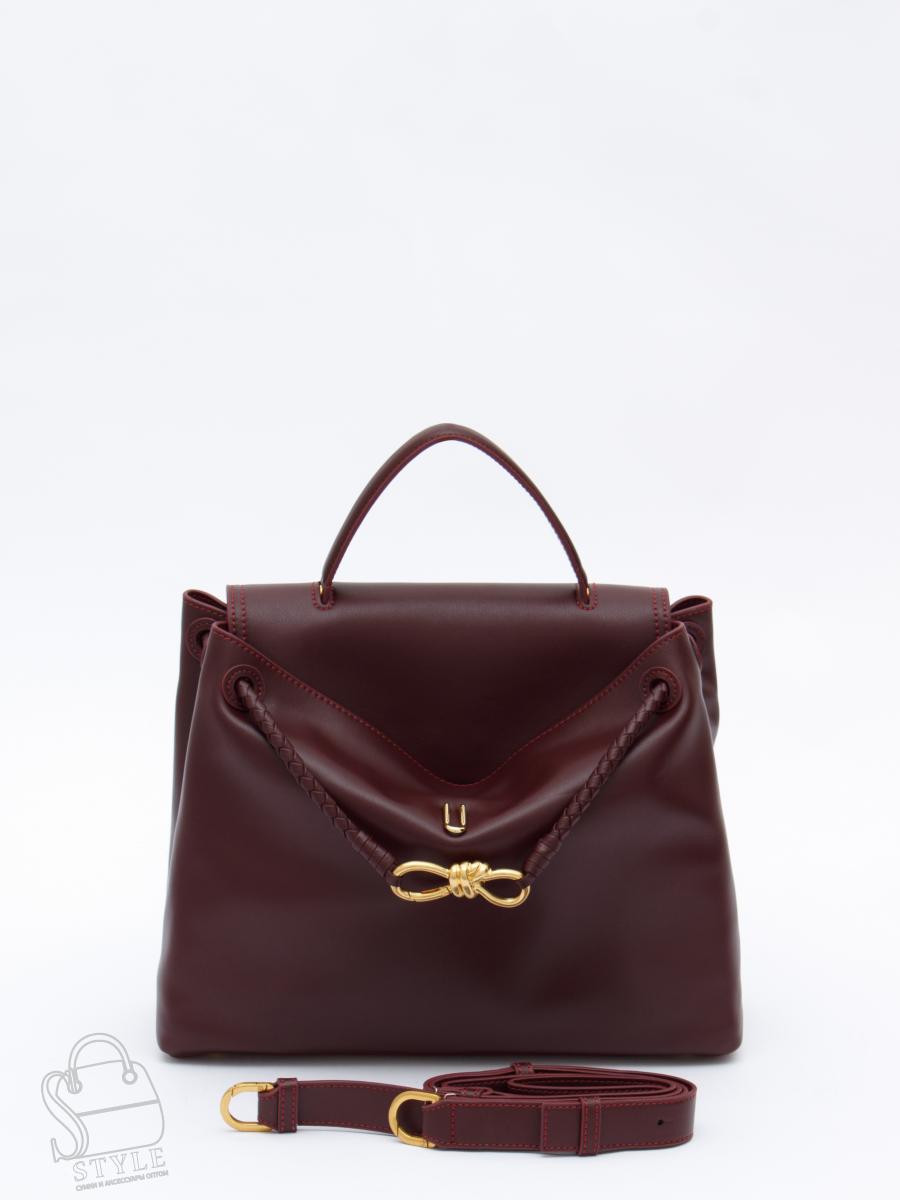 Эффектная трендовая сумка с мягким клапаном, выполнена из натуральной  кожи. Декорирована деталью на жгуте Дополнена золотистой фурнитурой. Данная модель закрывается на клапан Каркас мягкий. Носится сумка в руке или на плече. В комплекте имеется плечевой ремень съемный с регулировкой длины и встроенный жгут. На дне есть ножки.