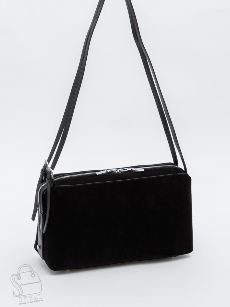 Стильная сумка, выполнена из натуральной замши.  Дополнена серебристой фурнитурой. Данная модель закрывается на молнию. Каркас мягкий. Носится на плече за встроенные ручки с регулировкой длины. На дне предусмотрены ножки.