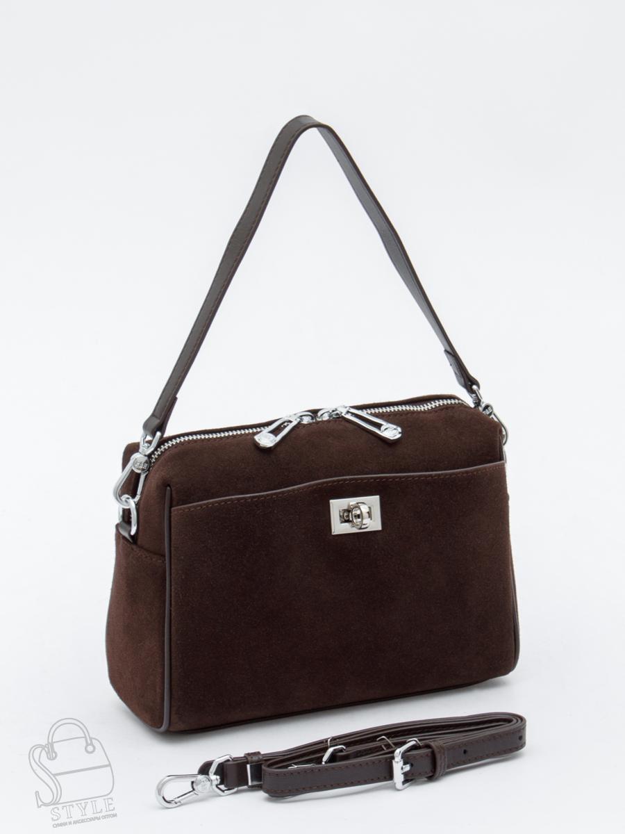 Сумка кросс-боди, выполнена из замши. Дополнена серебристой фурнитурой. Данная модель закрывается на молнию, носится в руке за съемную удлиненную ручку или на плече. В комплекте имеется ремень с регулировкой длины. Каркас полужёсткий.