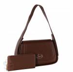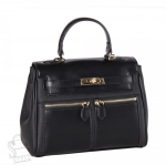 Базовая модель, выполнена из натуральной кожи и замши.  Дополнена золотистой фурнитурой. Данная модель закрывается на клапан. Каркас полужесткий. Носится через плечо за ремень. В комплекте есть ремень с регулировкой длины или в руке за встроенную  ручку. На дне предусмотрены ножки.