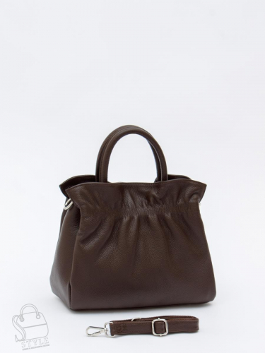 Базовая модель, выполнена из кожи.  Декорирована складками. Дополнена серебристой фурнитурой. Данная модель закрывается на молнию, носится в руке за встроенные ручки. Или на плече, в комплекте имеется ремень с регулировкой длины. Каркас мягкий. На дне предусмотрены ножки.