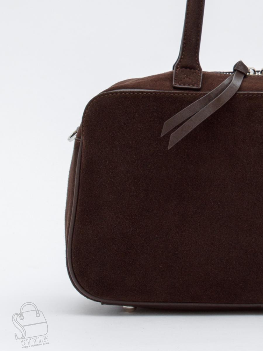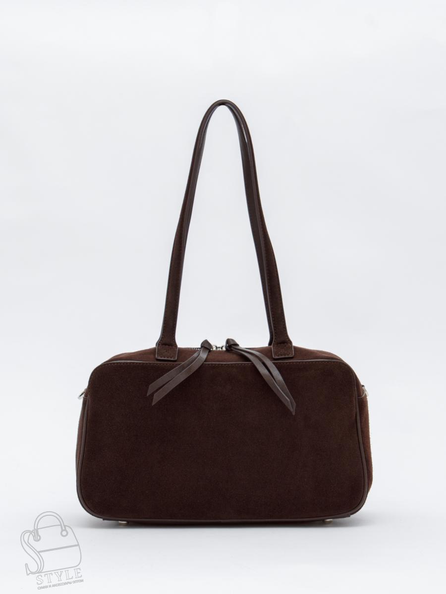 Вместительная модель, выполнена из замши. Дополнена серебристой фурнитурой. Данная модель закрывается на молнию. Каркас полужесткий. Носится в руке или на плече. В комплекте имеется съемный ремень с регулировкой длины. На дне предусмотрены ножки.