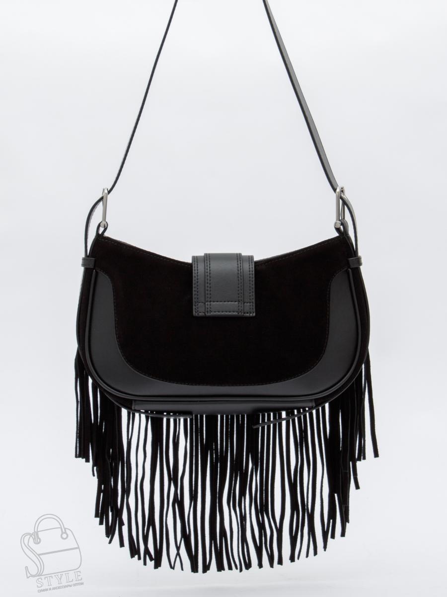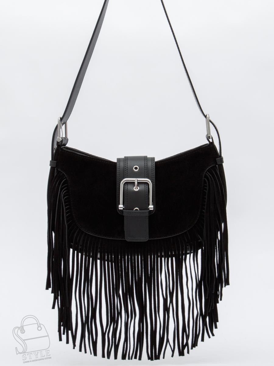 Эффектная модель, выполнена из замши. Декорирована бахромой. Дополнена серебристой фурнитурой. Данная модель закрывается на хлястик. Каркас мягкий. Носится в руке или на плече. Встроенный ремень регулируется по длине.