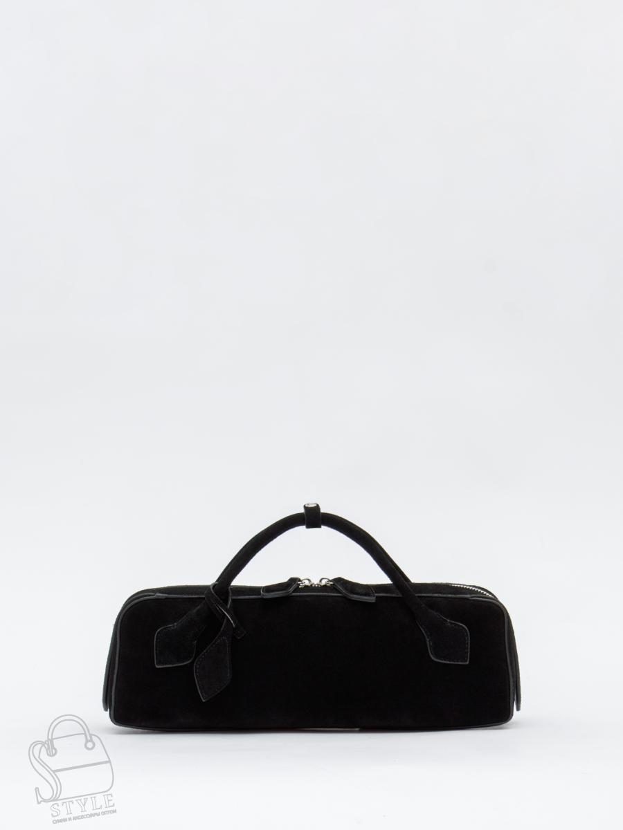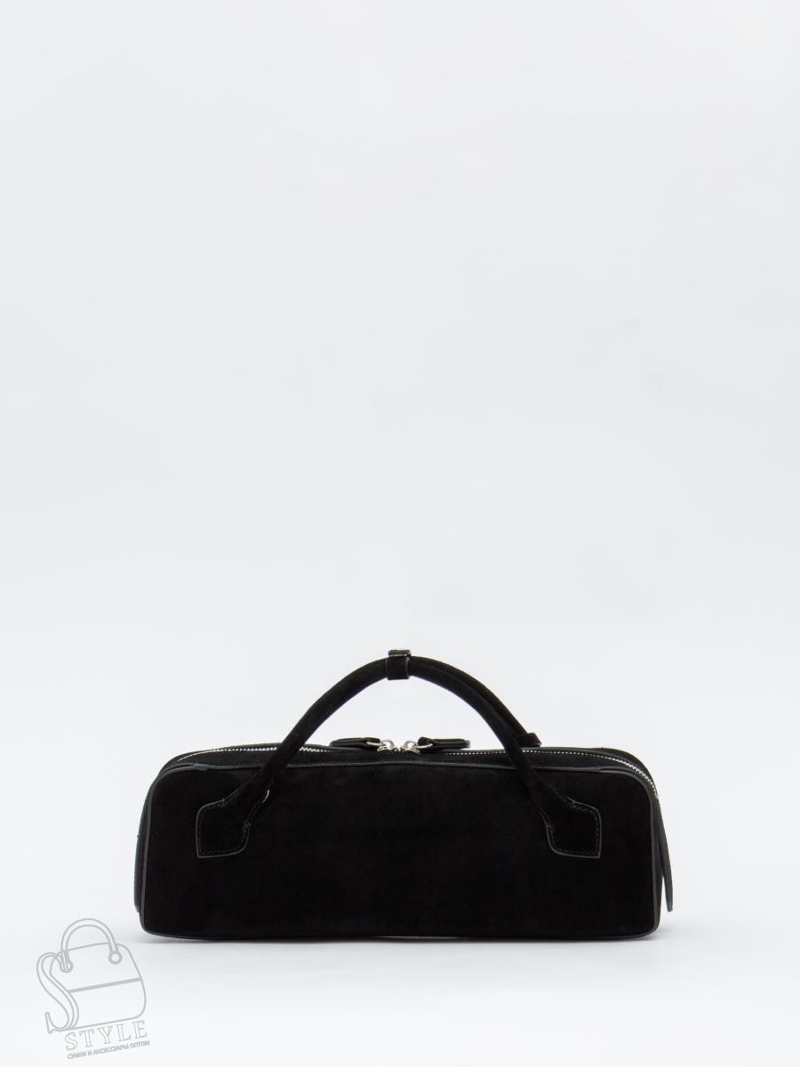 Модель-багет, выполнена из замши. Декорирована брелоком. Дополнена серебристой фурнитурой. Данная модель закрывается на молнию, носится в руке за встроенные ручки или на плече с помощью ремня. В комплекте предусмотрен ремень с регулировкой длины. Каркас полужесткий.