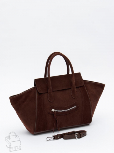 Сумка-лодочка, выполнена из замши. Дополнена серебристой фурнитурой. Данная модель закрывается на клапан. Каркас полужесткий. Носится за встроенные ручки или на плече. В комплекте имеется ремень с регулировкой длины.