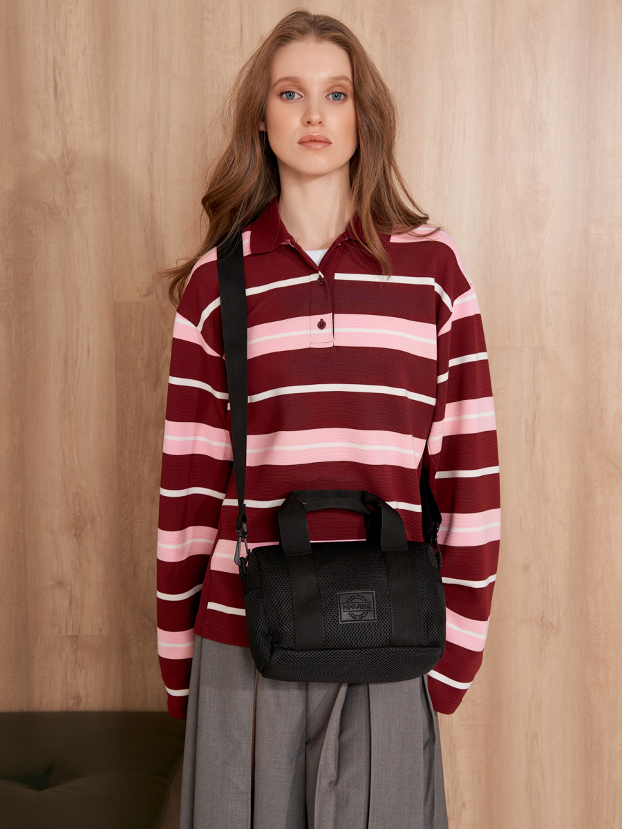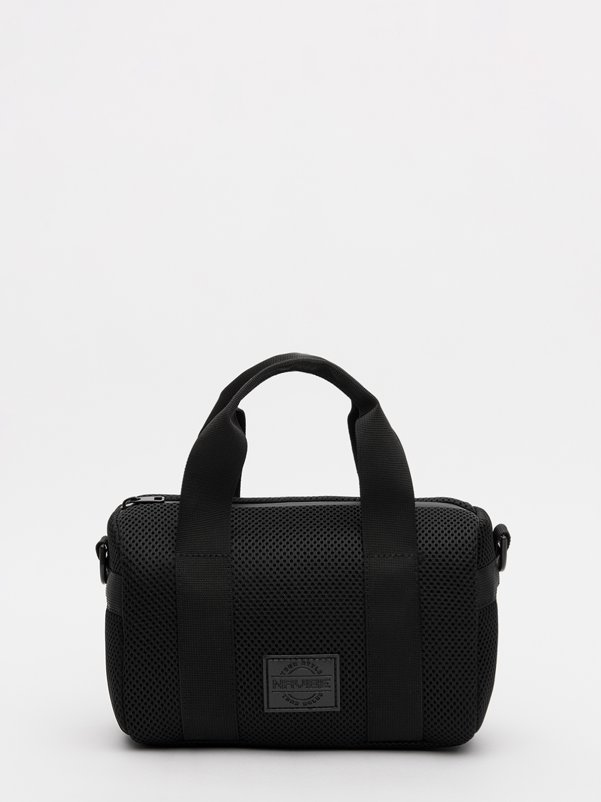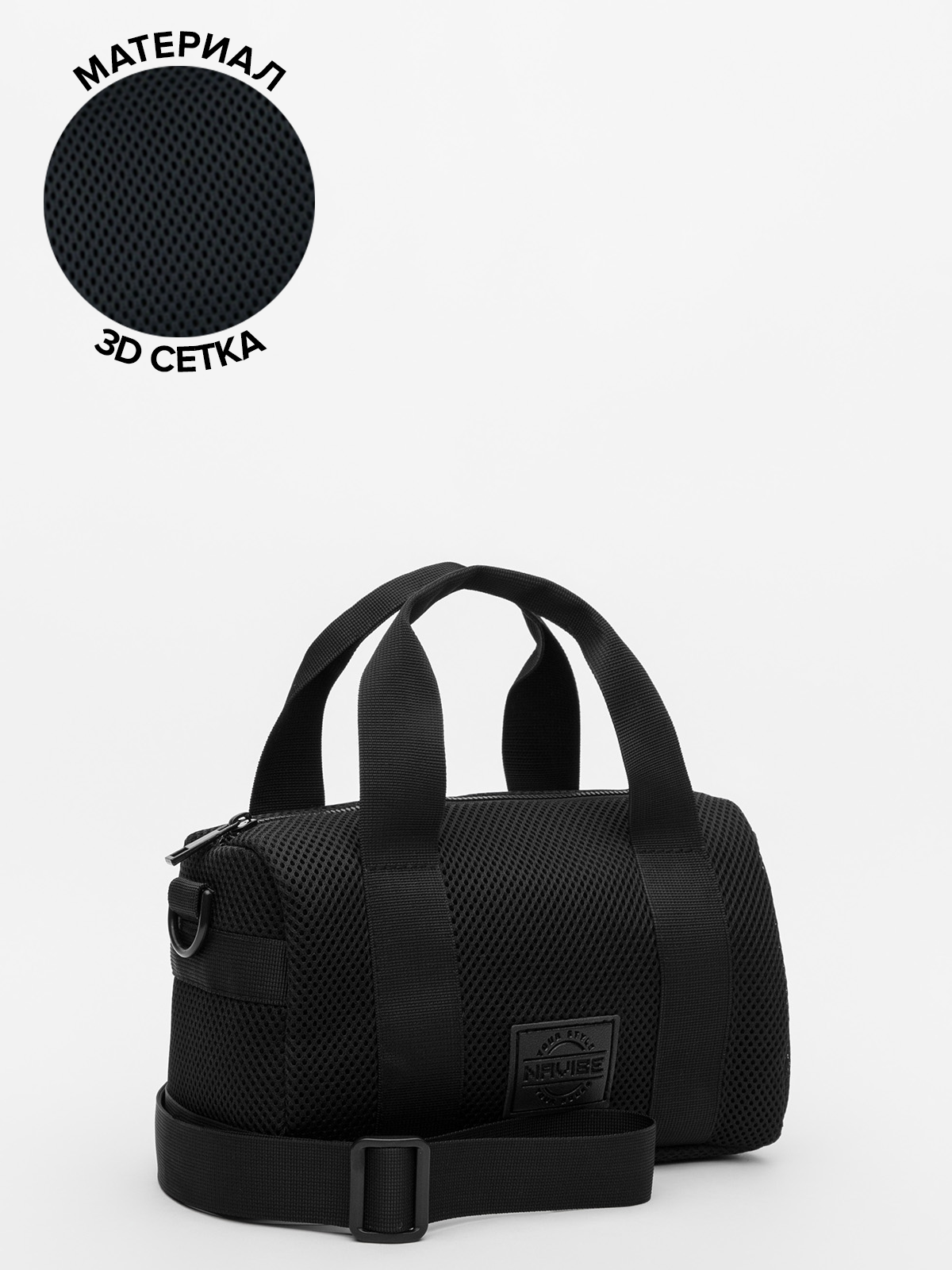 Трендовая форма «бочонка» с короткими ручками и съёмным регулируемым ремнём из рельефной стропы сочетает стиль и практичность.