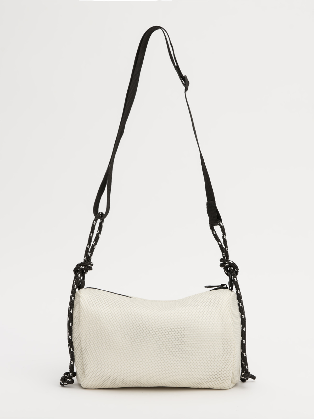 Её лаконичная форма бочонка из 3D-сетки выглядит современно и невесомо. Длинный регулируемый ремень с декоративными узлами добавляет образу лёгкую небрежность, сохраняя функциональность.