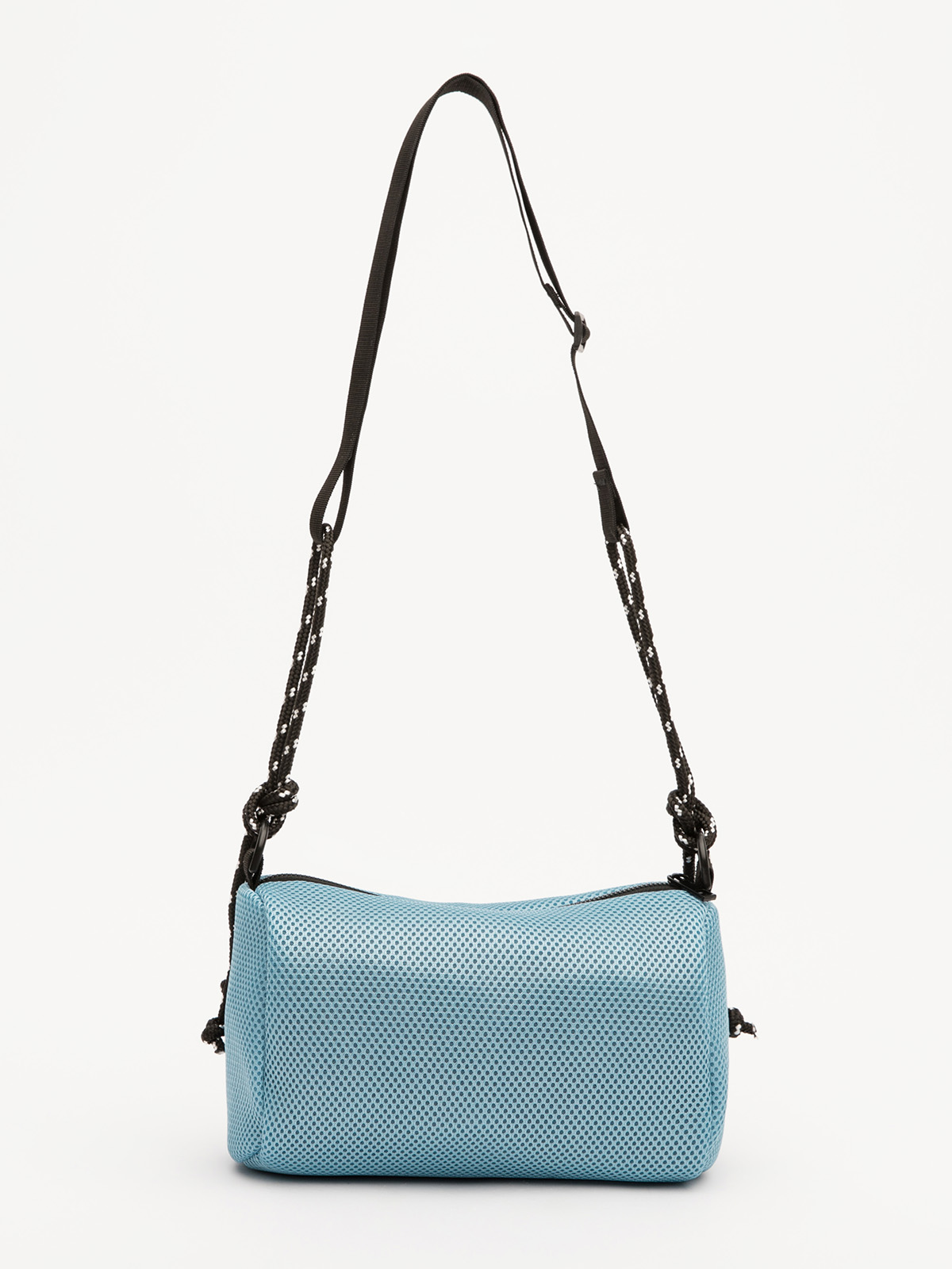 Её лаконичная форма бочонка из 3D-сетки выглядит современно и невесомо. Длинный регулируемый ремень с декоративными узлами добавляет образу лёгкую небрежность, сохраняя функциональность.