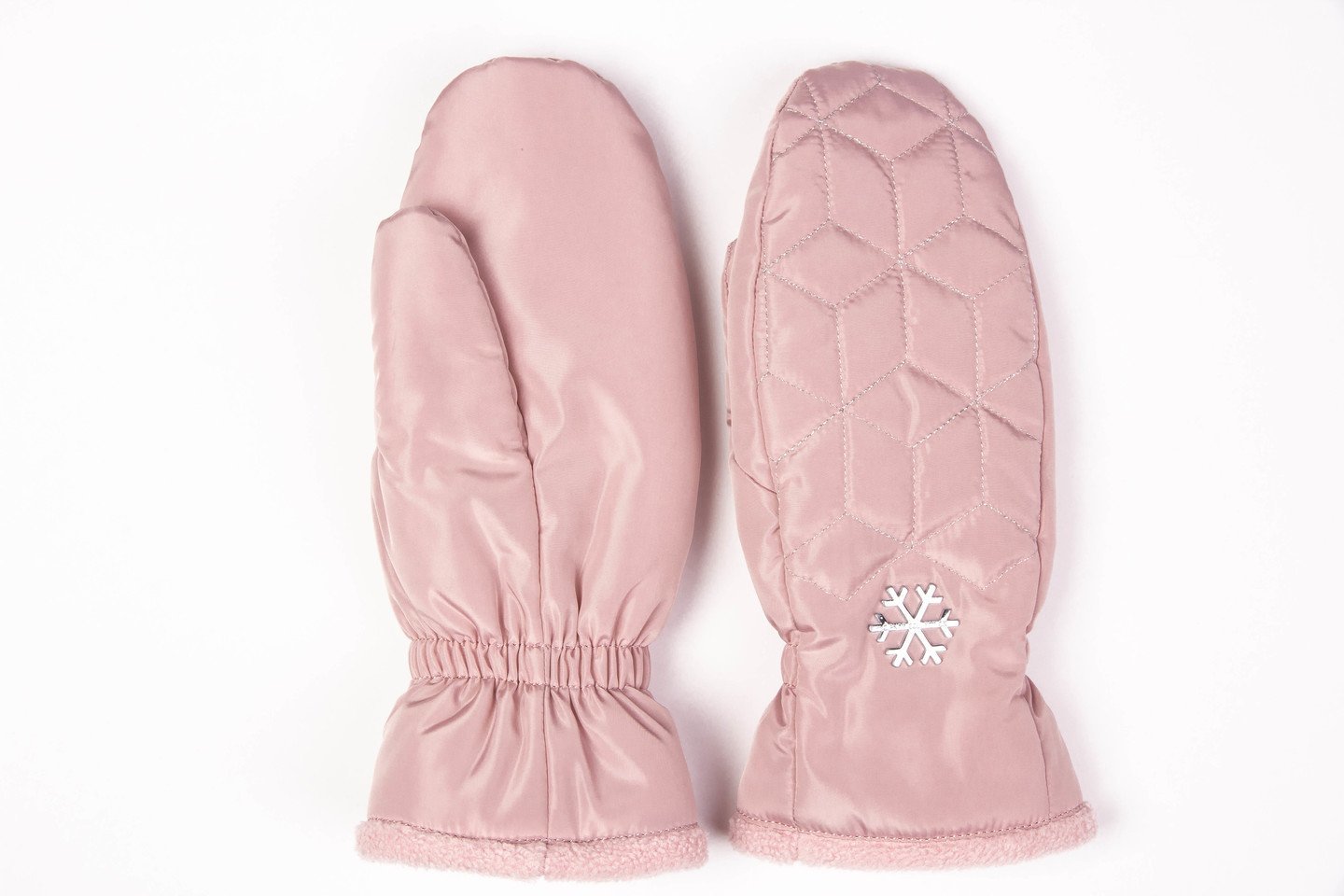 пудровый Теплые женские варежки из непромокаемой ткани - отличная защита морозной зимой. Модель выстрочена серебряной нитью, дополнена оригинальным декором, что создает неповторимый дизайн. Подкладка из мягкого флиса, на уровне запястья - резинка, модель уютна и комфортна в носке. Состав материалов: 100% полиэстер. Утеплитель: термофин, плотность 100. Температурный режим: до -20