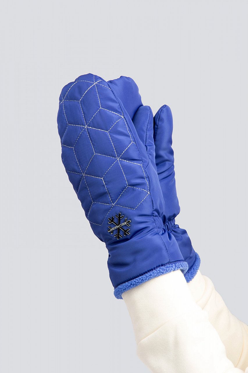 ярко-синий Теплые женские варежки из непромокаемой ткани - отличная защита морозной зимой. Модель выстрочена серебряной нитью, дополнена оригинальным декором, что создает неповторимый дизайн. Подкладка из мягкого флиса, на уровне запястья - резинка, модель уютна и комфортна в носке. Состав материалов: 100% полиэстер. Утеплитель: термофин, плотность 100. Температурный режим: до -20