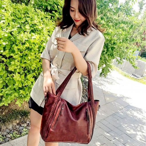 Интересная сумка с плетёными элементами будет удобна в любой ситуации. Модель выполнена из искусственной кожи высокого качества последних мировых разработок, внешне не отличимой от натуральной.