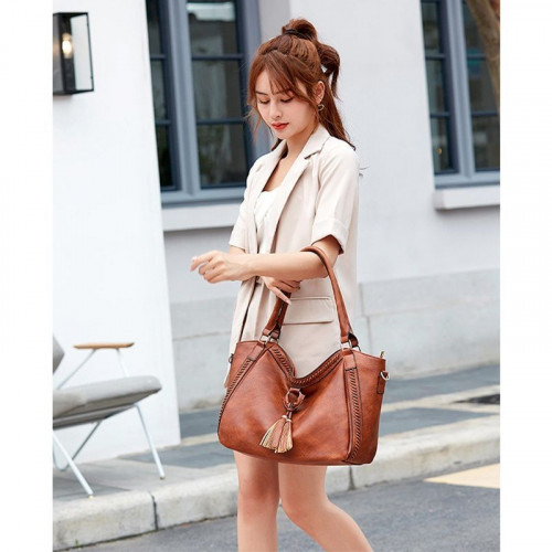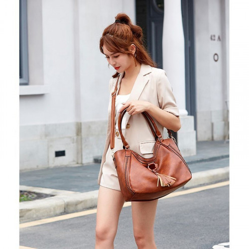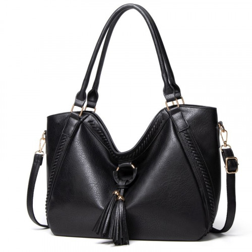Модная и вместительная сумка на каждый день. Модель украшена кожаной вышивкой и кисточками. Оригинальный крой и удлинённые ручки позволяют комфортно носить сумку в нескольких положениях: на плече, на локтевом сгибе и просто в руке. Модель выполнена из мягкой искусственной кожи высокого качества, внешне не отличимой от натуральной.