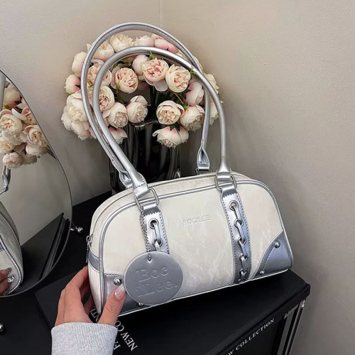 Цвет сумки: серебристый с белым