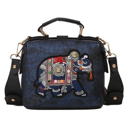 Стильная красивая сумочка на 2026 год. Украшена рисунком слона, выполненном в виде винтажной вышивки.