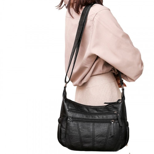 Внутри: два самостоятельных отделения, каждое из которых закрывается на молнию. По бокам расположены карманы на молнии и без для документов, телефона и всяких мелочей. В комплекте удлинённый ремень, регулируемый по высоте.