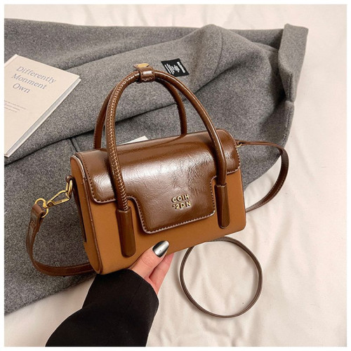Небольшая удобная сумочка изготовлена из искусственной кожи.