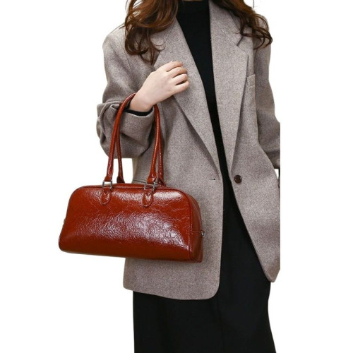 Внутри: одно отделение с карманами на молнии и без для телефона, документов и различных мелочей. Сумка закрывается на заклепки. В комплекте удлинённый ремень, регулируемый по высоте. Ровное устойчивое дно позволяет фиксировать положение сумки на поверхности. За счёт удобных ручек и ремня сумку можно носить на запястье, на плече, через плечо, на локте или в руке.