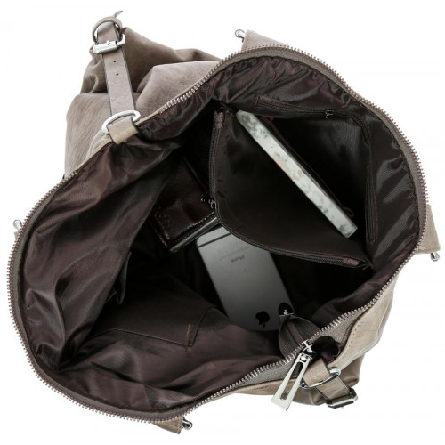 Внутри: одно большое отделение. По бокам расположены карманы: два на молнии и три открытых для документов, телефона и различных мелочей. С внешней стороны на задней стенке карман на молнии. На лицевой стороне накладной карман с крышкой клапаном на крепкой кнопке-магните, а так же карман на молнии. В комплекте удлиненный ремень, регулируемый по высоте. Сумка закрывается на молнию.