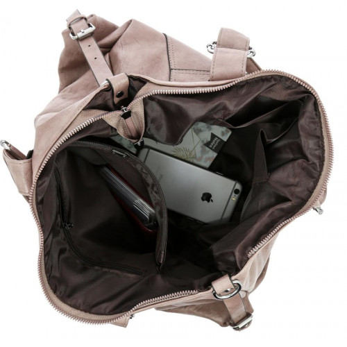 Внутри: одно большое отделение. По бокам расположены карманы: два на молнии и три открытых для документов, телефона и различных мелочей. С внешней стороны на задней стенке карман на молнии. На лицевой стороне накладной карман с крышкой клапаном на крепкой кнопке-магните, а так же карман на молнии. В комплекте удлиненный ремень, регулируемый по высоте. Сумка закрывается на молнию.
