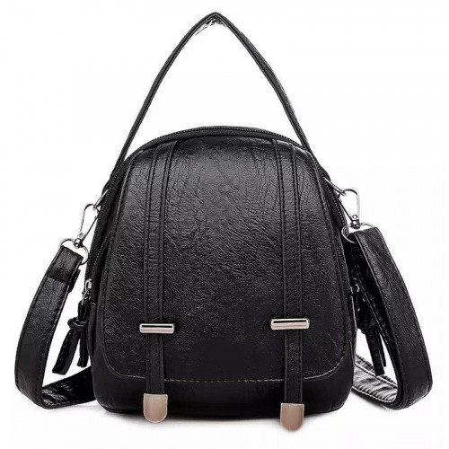 Внутри: одно отделение, которое закрывается на молнию. На внешней передней стенке расположено отделение, закрывающееся на молнию и крышку-клапан с крепким замком-магнитом. На задней внешней стенке расположено отделение на молнии, которое имеет отверстие для наушников. В комплекте удлинённый ремень, регулируемый по высоте.