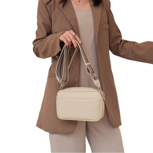Внутри: одно отделение с открытым карманом для документов, телефона и различных мелочей. Сумка закрывается на молнию. На внешней задней стенке имеется карман на молнии. В комплекте имеется удлинённый ремень, регулируемый по высоте.