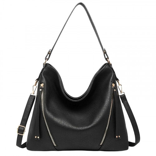 Внутри: одно большое отделение, по бокам которого расположены два кармана на молнии и без для телефона, документов и различных мелочей. С внешней стороны расположены косые молнии, которые украшают и закрывают два внешних отделения. С внешней задней стороны имеется карман, закрывающийся на молнию. Сумка закрывается на молнию. В комплекте удлиненный регулируемый ремень.