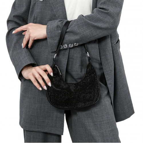 Сумка-клатч из высококачественной искусственной кожи, внешне не отличимой от натуральной, и замши на лицевой стороне с отделкой из страз.
