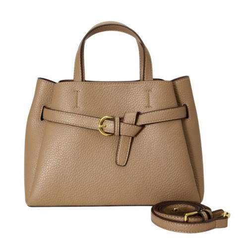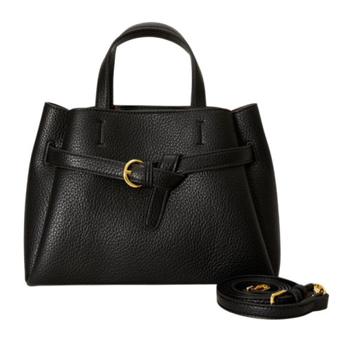 Внутри: три отделения, боковые на кнопках магнитах. Сумка закрывается на молнию. В комплекте удлинённый ремень, регулируемый по высоте. Удобные ручки позволяют носить сумку на локте и в руке. Модель хорошо держит форму. На дне имеются металлические ножки, предохраняющие сумку от потёртостей.