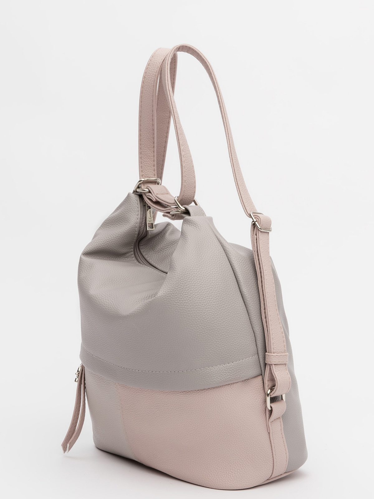 Модель легко меняет форму, позволяя носить её на плече, через плечо или как рюкзак — в зависимости от ситуации. Сочетание нескольких цветов делает сумку стильным акцентом в любом образе. Внутри — продуманная организация: основной отдел, карман на молнии для ценных вещей, отделение для телефона и дополнительный большой карман. Функциональность и неординарный дизайн в одной сумке — идеальный выбор для тех, кто ценит комфорт и возможность всегда иметь под рукой всё необходимое.
