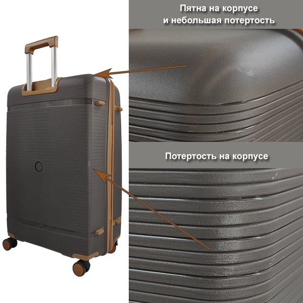 У чемодана есть боковые ножки и две ручки для переноски: верхняя и боковая.