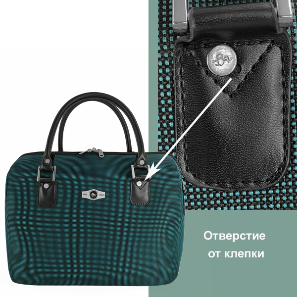 УЦЕНКА. Отверстие от клепки на креплении для ручки. Бьюти-кейс Borgo Antico. 6088 green 14"